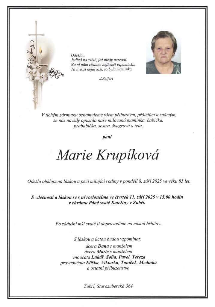 Pohřeb - Za spásu Marie Krupíkové